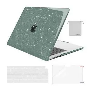 MOSISO Compatible with MacBook Air 13 inch Case 2025 2024 2023 2022 M4 A3240 M3 A3113 M2 A2681, Sparkly Glitter Hard Shell&Keyboard Cover&Screen Film&Pouch for MacBook Air 13.6 inch Case,Emerald Green
