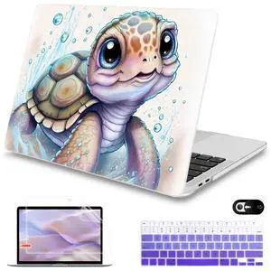 Mektron for MacBook Air 13 Case A1466/A1369 (2010-2017 Release), Snap-on Plastic Hard Shell Cover for MacBook Air 13.3 inch with Keyboard Cover, Cute Turtle