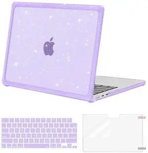 MOSISO Compatible with MacBook Air 13 inch Case 2025 2024 2023 2022 M4 A3240 M3 A3113 M2 A2681, Anti-Cracking TPU Bumper Glitter Hard Case&Keyboard Cover&Screen Film for MacBook Air 13.6, Purple