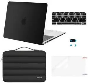MOSISO Compatible with MacBook Air 13 inch Case 2022 2021 2020 2019 2018 Release A2337 M1 A2179 A1932, Plastic Hard Case&Puffy Sleeve Bag&Keyboard Skin&Webcam Cover&Screen Protector, Black