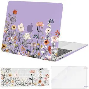 MOSISO Compatible with MacBook Air 13 inch Case 2022 2021 2020 2019 2018 Release A2337 M1 A2179 A1932 Retina Display, Plastic Garden Flowers Hard Shell&Keyboard Cover&Screen Protector, Purple