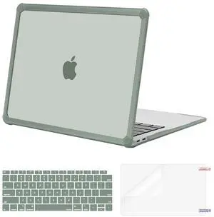 MOSISO Compatible with MacBook Air 13 inch Case 2022-2018 Release A2337 M1 A2179 A1932, Anti-Cracking Heavy Duty Plastic Hard Shell Case with TPU Bumper&Keyboard Cover&Screen Film, Emerald Green