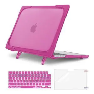 MOSISO Compatible with MacBook Air 13 inch Case 2025-2022 M4 A3240 M3 A3113 M2 A2681, Heavy Duty Hard Shell with Fold Kickstand&Keyboard Cover&Screen Film for MacBook Air 13.6 inch Case, Pink