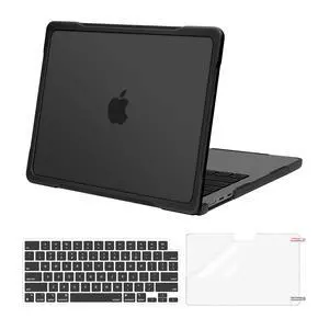 MOSISO Compatible with MacBook Air 13 inch Case 2025 2024 2023 2022 M4 A3240 M3 A3113 M2 A2681,Anti-Cracking Heavy Duty TPU Bumper Hard Case&Keyboard Skin&ScreenFilm for MacBook Air 13.6, Black