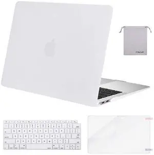 MOSISO Compatible with MacBook Air 13 inch Case M1 Chip 2021-2018 Release A2337 A2179 A1932, Plastic Hard Shell&Keyboard Cover&Screen Film&Storage Bag for MacBook Air 13.3 inch Case, White
