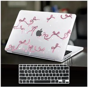 DTangLsm Compatible for 2025 MacBook Air 13 inch Case 2024 2023 2022 M4 M3 M2 A3240 A3113 A2681 with Touch ID, Clear Slim Plastic Hard Shell Case&Keyboard Skin for MacBook Air 13.6 M2 Cover,Pink Bows