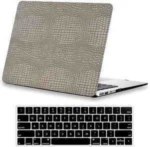 DTangLsm Compatible with MacBook Air 13 inch Case 2010-2017 Release A1466 A1369, Crocodile Skin Alligator Snakeskin PU Leather Hard Shell Cover for MacBook Air 13" 2017 Case and Keyboard Cover, Silver