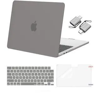MOSISO Compatible with MacBook Air 13 inch Case 2025 2024 2023 2022 M4 A3240 M3 A3113 M2 A2681, Plastic Hard Shell&Keyboard Cover&Screen Film&Type C for MacBook Air 13.6 inch Case, Gray
