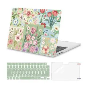 MOSISO Compatible with MacBook Air 13 inch Case 2025 2024 2023 2022 M4 A3240 M3 A3113 M2 A2681, Spliced Flowers Plastic Hard Shell&Keyboard Cover&Screen Film for MacBook Air 13.6 inch Case, Green