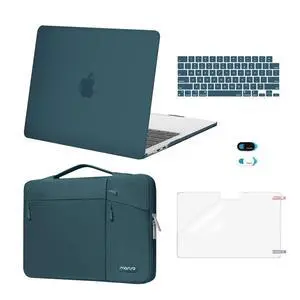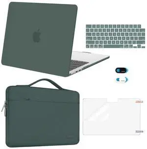 MOSISO Compatible with MacBook Air 13 inch Case 2025 2024 2023 2022 M4 A3240 M3 A3113 M2 A2681, Hard Shell&Sleeve Bag&Keyboard Skin&Webcam Cover&Screen Film for MacBook Air 13.6 inch, Emerald Green