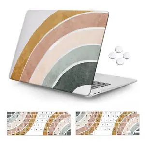 iCasso Compatible with MacBook Air 13 inch Case 2022, 2021-2018 Release A2337 M1 A2179 A1932 Retina Display Touch ID, Plastic Hard Shell Case + Keyboard Cover + Screen Protector, Molandi Rainbow