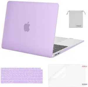 MOSISO Compatible with MacBook Air 13 inch Case M1 Chip 2021-2018 Release A2337 A2179 A1932, Plastic Hard Shell&Keyboard Cover&Screen Film&Storage Bag for MacBook Air 13.3 inch Case, Light Purple