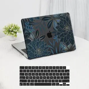 Compatible with MacBook Air 13 inch Case 2021 2020 2019 2018 M1 A2337 A2179 A1932, Clear Case with Floral Design, Cute Aesthetic Plastic Hardshell & Keyboard Cover for Mac Air 13.3, Dahlia Flowers