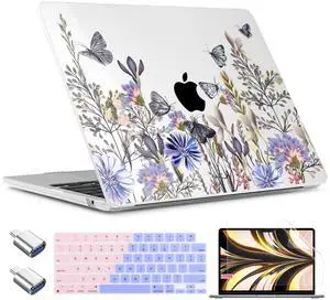 TWOLSKOO for MacBook Air 13 inch Case M4 A3240 M3 A3113 M2 A2681 2025 2024 2022 Plastic Hard Shell, Keyboard Cover, Type C Adapter, Screen Protector for MacBook Air 13.6 inch, Garden Flower