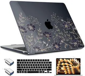 iCasso for MacBook Air 13 inch Case 2025 2024-2022 M4 M3 M2 Model A3240 A3113 A2681,[Ultra Thin Armor][100% Match Midnight], Air 13.6'' Flower Crystal Clear Hard Shell Protective Cover, Midnight