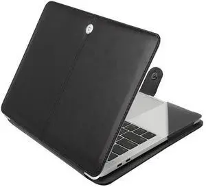 MOSISO Case Compatible with MacBook Air 13.6 inch M4 M3 M2 2025-2022 /Air 13 M1 2022-2018 /Pro 13 inch M2 M1 2025-2016, PU Leather Portfolio Protective Stand Cover, Black