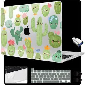 MEEgoodo for MacBook Pro 13 inch Case 2022 2021 2020 A2338 M2/M1 A2251 A2289 with Touch ID,Clear Laptop Hard Shell Cases with Keyboard Webcam Cover & Trackpad Film & Type C Adapter, Smiley Cactus