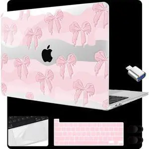 MEEgoodo for MacBook Pro 13 inch Case 2022 2021 2020 A2338 M2/M1 A2251 A2289 with Touch ID,Clear Laptop Hard Shell Cases with Keyboard Webcam Cover & Trackpad Film & Type C Adapter, Melted Bow