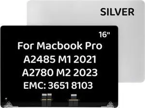 16" Compatible with MacBook Pro Retina M1 M2 2021 2023 A2485 EMC 3651 A2780 EMC 8103 661-21968 661-21969 LCD 3456 x 2234 Screen Digitizer Replacement Whole Hinge-up Assembly (Silver)
