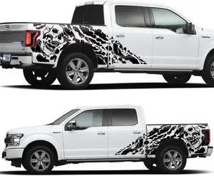 Acaigel Two Sides Skull Body Decal Vinyl Sticker Black For Pickup 4x4 Off Road Truck SUV
