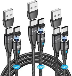 540 Rotating Magnetic Charging Cable [7-Pack, 1.6ft/3ft/3ft/6ft/6ft/10ft/10ft] 3 in 1 Nylon Braided Magnetic USB Cable for iProduct/Micro USB/Type C Device