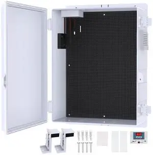 Outdoor Electrical Box, Waterproof Electrical Junction Box IP65 ABS Plastic Enclosure with Fan & Thermostat, Mounting Plate and Hinged Lid (15.7" H x 11" L x 5.9" W)