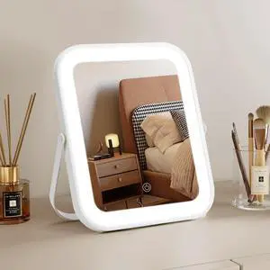 Lighted Makeup Mirror, Hollywood Vanity Mirror with Lights, Three Color Lighting Modes, Smart Touch Control, Rotation, Desk Makeup Mirror for Desks Bedroom Dorm Dressing Room (9.48"x11.81")