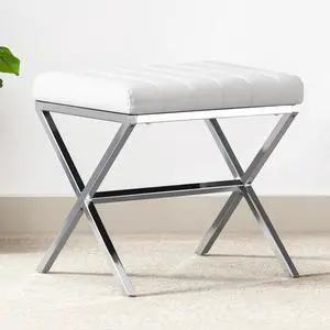 DUHOME Vanity Stool,Modern PU Leather Ottoman Stool Chair for Vanity Bench with Metal X Legs, Rectangle Makeup Stools Padded Foot Rest Ottoman for Makeup Room, Living Room, Bathroom,White
