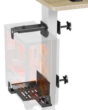 JOY worker Upgraded Under Desk PC Mount for Standing Desk, Clamp-On Desk Leg Computer Mount with Extra Protective Arms, Adjustable Computer Case CPU Holder Holds Up to 44lbs, Black