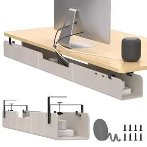 ERGO COLLECT Under Desk Cable Management Tray,No-Drill Upgraded Thickened Felt Cord Organizer with Clamp or Screw Mount,Cable Holder for Standing Desk,Home Or Office(Beige, 47.2")