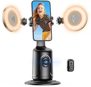 Auto Face Tracking Tripod with 2 Selfie Ring Light, 360° Rotation Face Body Phone Holder Smart Shooting Camera Mount with Remote, Rechargeable Smart Shooting Holder for Vlog, Streaming, Video, Tiktok