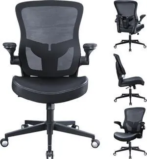 Office Chair, 400lbs Heavy Duty Ergonomic Desk Office Chair with Flip-Up Arms, Home Office Desk Chairs with Adjustable Seat Height & Lumbar Support for Heavy People, Computer Task Chair