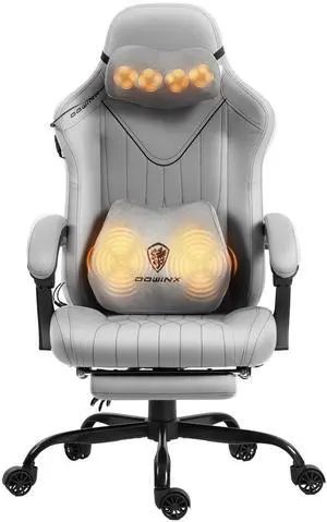 Dowinx Gaming Chair with Shiatsu Neck Massage and Lumbar Support for Home&Office, High Back Recliner for Big and Tall, PU Leather Game Chair Seat Height Adjustable, Ergonomic Computer Chair, Grey
