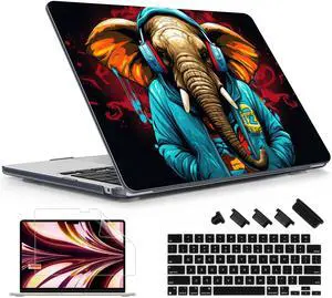 Lepeoac Case for MacBook Air 15 Inch 2025 2024 2023 Release M4 A3241 M3 A3114 M2 A2941, Hard Shell with Screen Protector & Keyboard Cover, Compatible with Touch ID, Elephant Hoodie