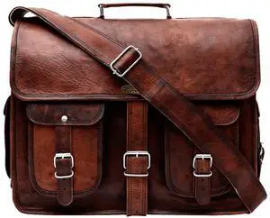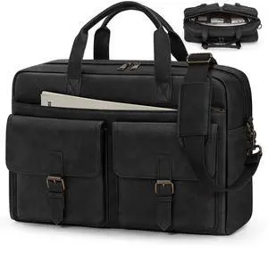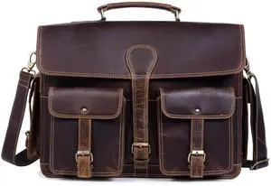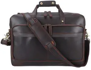 Originalfun 18" Full Grain Leather Briefcase Laptop Bag Shoulder Messenger Bag Men' Handbag