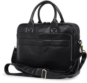 Nordweg Workday Briefcase NW053B Full-Grain Leather Laptop Bag 15.6" Office Shoulder Messenger for Work, Study, Travel - Black