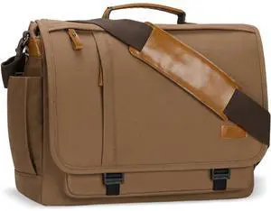 ESTARER Messenger Bag 17-17.3 Inch, Men's Computer Bag Water-resistant Canvas, Laptop Shoulder Bag for Travel Work College, Brown