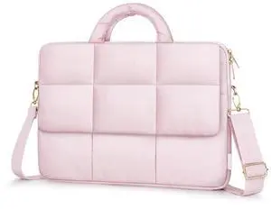 MOSISO Puffy Laptop Shoulder Bag, 15.6 inch Messenger Computer Bags Compatible with MacBook Pro 16 inch, HP, Dell, Lenovo, Asus Notebook, Rectangle Quilted Flapover Sleeve Bag with Zipper&Pocket, Pink