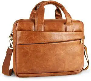 Faux Leather Messenger Bag for Men 15.6 Inch: Laptop Bag Briefcase Computer Handbags Shoulder Crossbody Bag with Padded Laptop Sleeve for Work College Travel, PU Brown