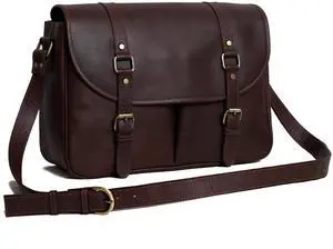 VALENCHI Leather Messenger Bag For Men, Women - 14" Leather Laptop Messenger Briefcase & Shoulder Bag - Office, Work, College, Casual - Gift For Him, Her - Father's day (Brown Trumble)