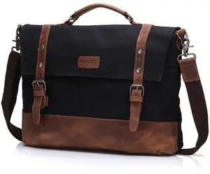 Canvas 15.6 Inch Laptop Messenger Bag for Men - Vintage Leather Business Briefcase Tote Shoulder Satchel Bags with Removable Strap