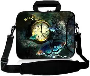 RICHEN 14 15 15.4 15.6 inch Laptop Shoulder Bag Messenger Bag Notebook Handle Sleeve Neoprene Carrying Case with Accessories pocket (14-15.6 inch, Clock & Butterfly)