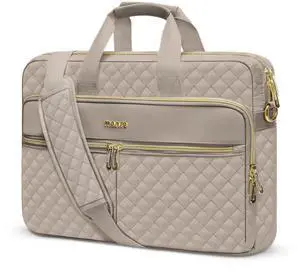MOSISO 15-15.6 inch Laptop Bag, Briefcase for Women&Men, 16 inch Square Quilted Computer Messenger Bag Office Travel Business with 3 Pockets&Strap, Beige