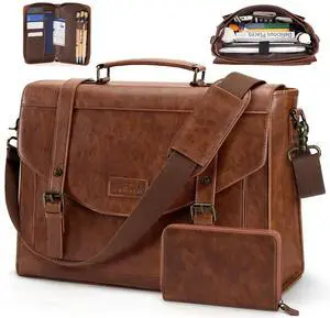 Leather briefcase 18 Inch Laptop Messenger Bags for Men and Women Best Office Briefcase Satchel Bag