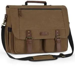 RAINSMORE Messenger Bag for Men 15.6-17.3 Inch Laptop Bag Water-resistant Canvas Briefcase Large Computer Satchel Shoulder Bag for Work College Travel, Brown