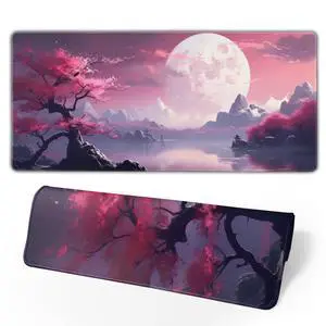 KEHIPI Extended Gaming Mouse Pad, Large Desk Mat XL Anime Mouse Pad Waterproof with Stitched Edges, Non-Slip Desktop Pad for Home and Office, Level Up Your 31.5x11.8 Inch (Darkness Red Moon)