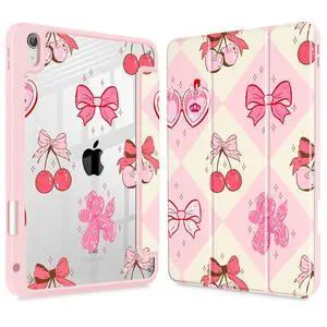 Mektron Case for 2025 iPad 11 inch (A16 Chip) 11th Gen Fit iPad 10th Gen10.9 inch 2022, Buit in Pencil Holder with Shockproof Cover Clear Shell + Trifold Stand + Auto Wake/Sleep, Cherry with Bows