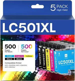 True Color Toner LC61 Ink Cartridge 5 Pack - Premium Compatible Replacement for Brother LC-61 LC61BK LC61C LC61M LC61Y Works With Brother DCP165C MFC250C 255CW- Cartridge Quantity: 5 Pack