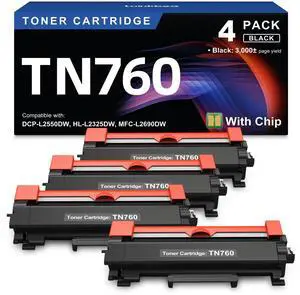 TN760 Toner Compatible Replacement for Brother TN760 TN-730 TN-760 TN730 Toner Cartridge for Brother Printer L2325DW L2350DW L2370DW L2390DW L2395DW L2550DW L2690DW L2710DW L2717DW L2750DW 4Pack Black