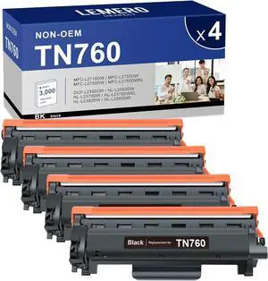 LEMERO UEXPECT TN760 Toner Compatible for Brother Printer Replacement for Brother TN760 TN-730/TN-760 TN730 High Yield for MFC-L2710DW MFC-L2717DW HL-L2350DW HL-L2395DW DCP-L2550DW Printer, 4 Pack